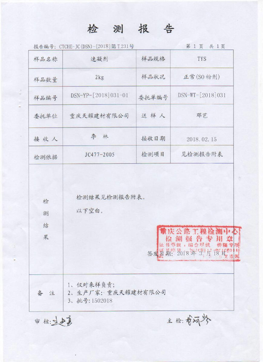 速凝劑檢測報告